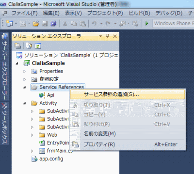 「ServiceReference」を右クリックし、「サービス参照の追加」を押します。