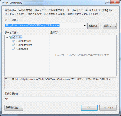 C#からClalisのSOAPメソッドを使用するには、設定が必要です。