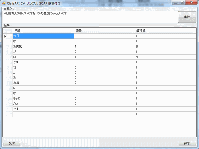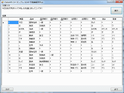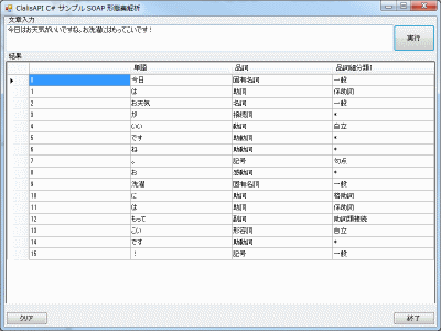 サンプルでは、テキストボックスに入力した文字列を形態素解析し、