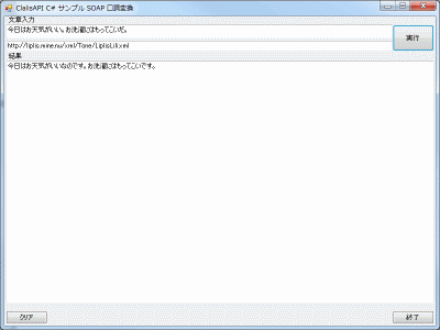サンプルでは、テキストボックスに入力した文字列を口調変換し、