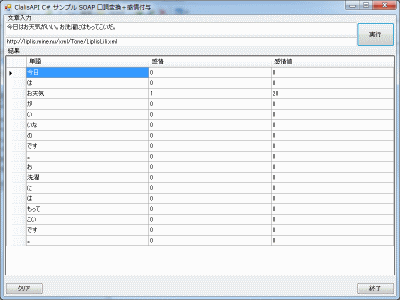 サンプルでは、テキストボックスに入力した文字列を感情付与し、