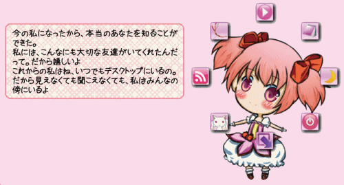 魔法少女のまどかが、かわいくデスクトップ上でおしゃべりします。